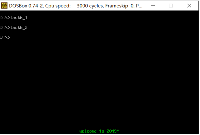 对汇编源程序task6_2.asm进行汇编、链接,得到可执行程序task6_2.exe。运行task6_2.exe。