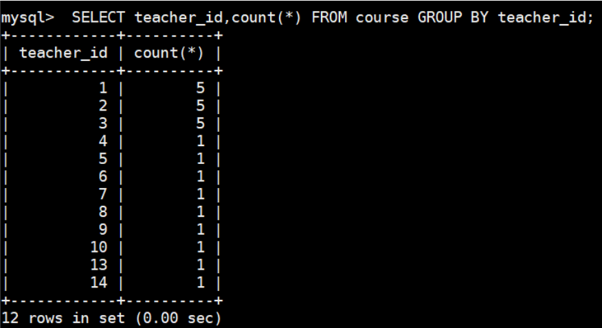 # 需要查出course表中教师相关信息,按照teacher_id字段分组可去除重复数据