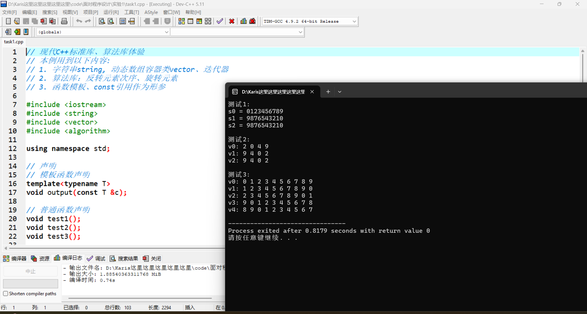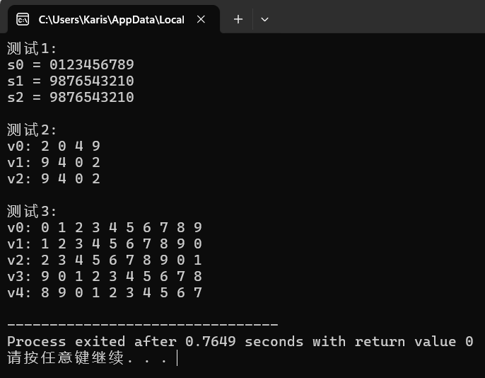 reverse_copy(s0.begin(), s0.end(), s2.begin()); // 将指定迭代区间的元素拷贝到指定迭代器开始的目标区间,并且在复制过程中反转次序