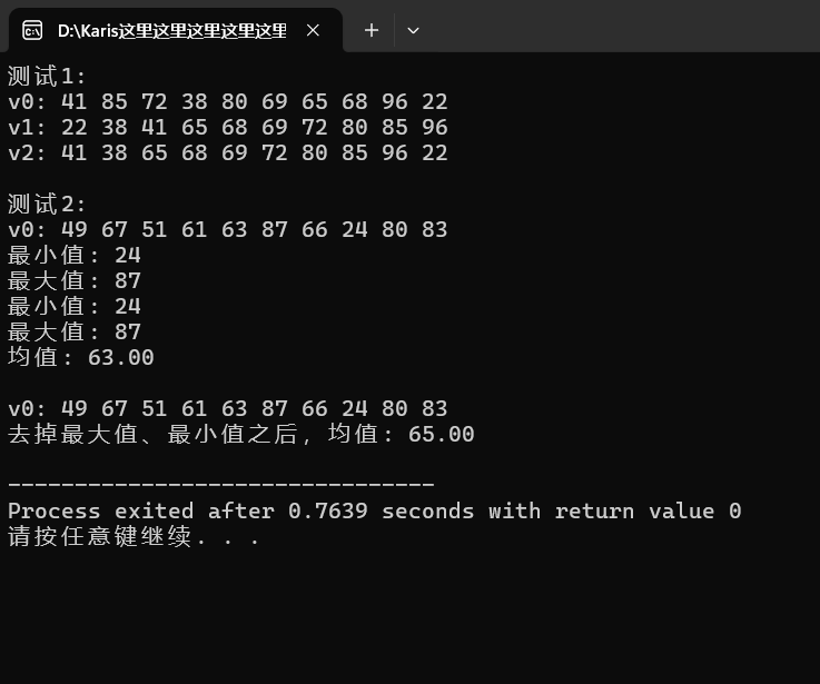 cout << "去掉最大值、最小值之后,均值: " << avg2 << endl;