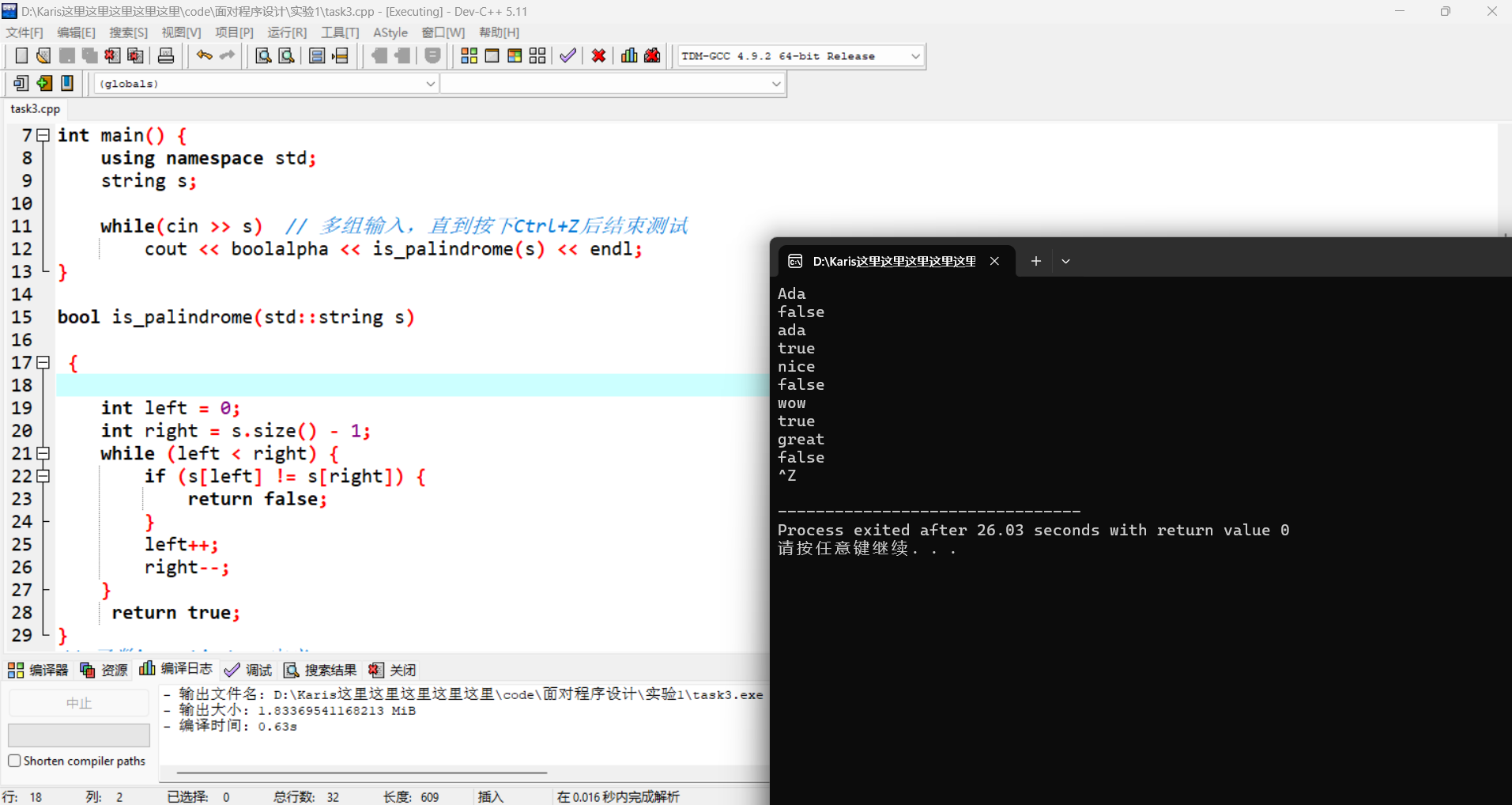 cout << boolalpha << is_palindrome(s) << endl;//boolalpha 用于以布尔值形式输出 true 或 false。