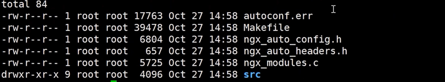 #编译完成安装后会产生很多中间文件在目录 objs 下所示,所有安装的模块均在 ngx_modules.c 文件中