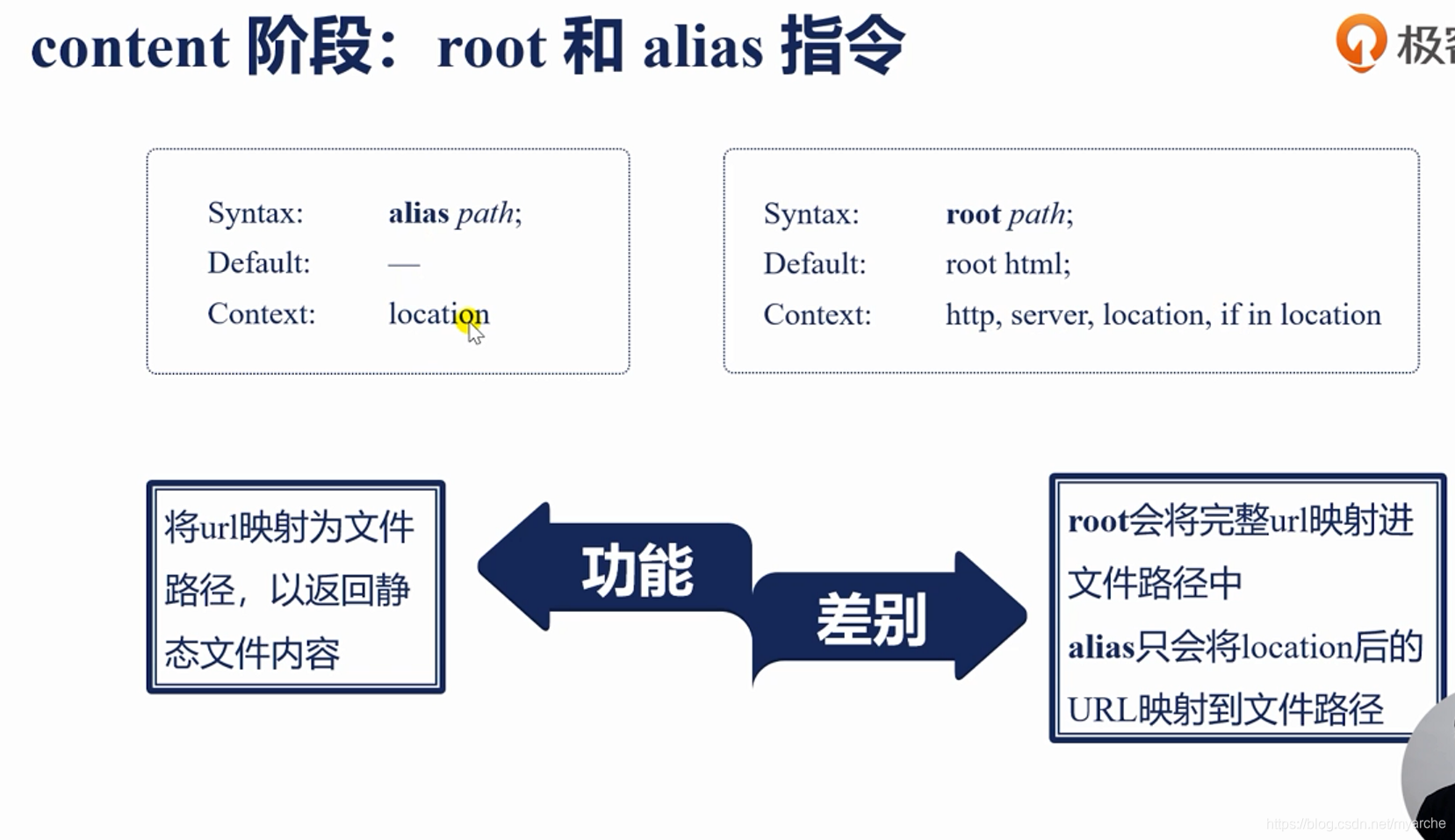 区别:alias:以使用alias路径替换location路径 ,root :root路径+location路径