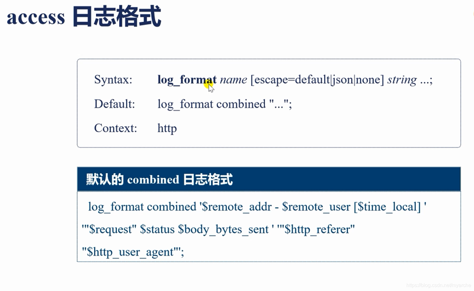 关于自定义日志格式,可以在 http 模块中使用
