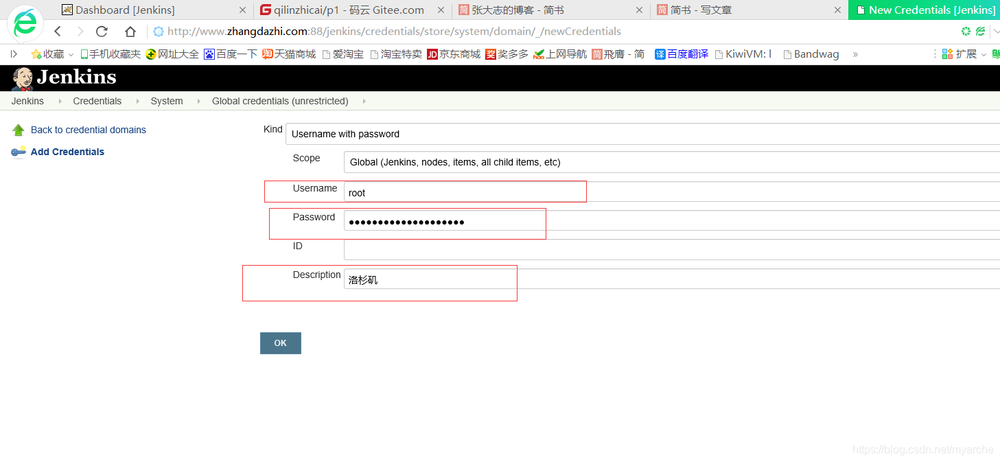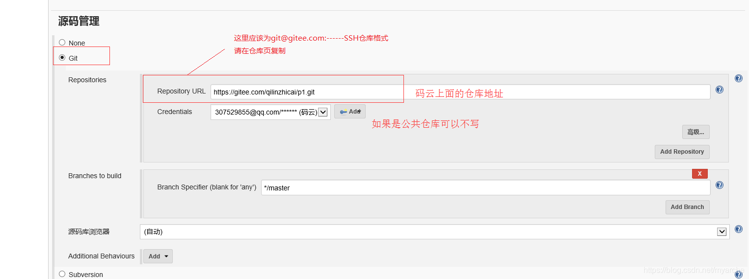 添加一个jenkins连接到码云时,登录到码云的用户名和密码