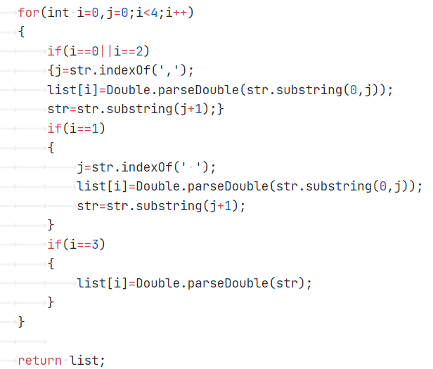 通过点与点之间格式的特点,判断,和空格的位置,借此取出每个点的x,y坐标并存入double数组中的对应位置。