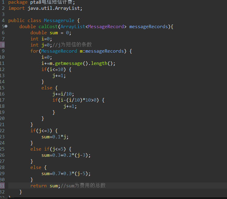 实现一个简单的电信计费程序,针对手机的短信采用如下计费方式: