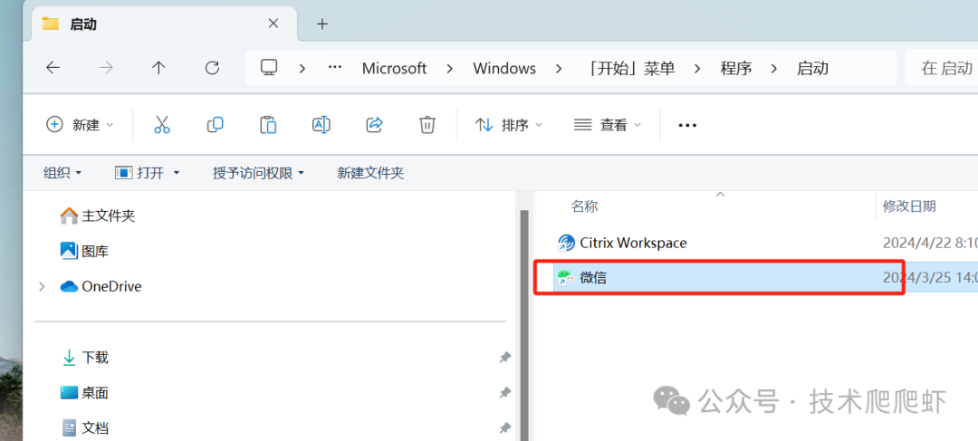 它会打开一个文件夹,文件夹中的快捷方式都会在Windows启动时自动打开,比如这里有一个Hyper-v管理器。我电脑启动的时候,Hyper-v管理器就会自动启动。我们可以将任意一个快捷方式加入其中,完成应用的开机自启动,比如我想开机运行微信,我们可以复制一下微信的快捷方式,直接粘进去,齐活~
