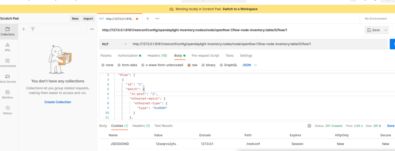 - 能够使用Postman工具调用OpenDaylight API接口下发流表。
