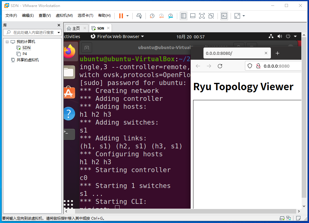 - 在虚拟机中安装Ubuntu 20.04 Desktop amd64,并完整安装Mininet;