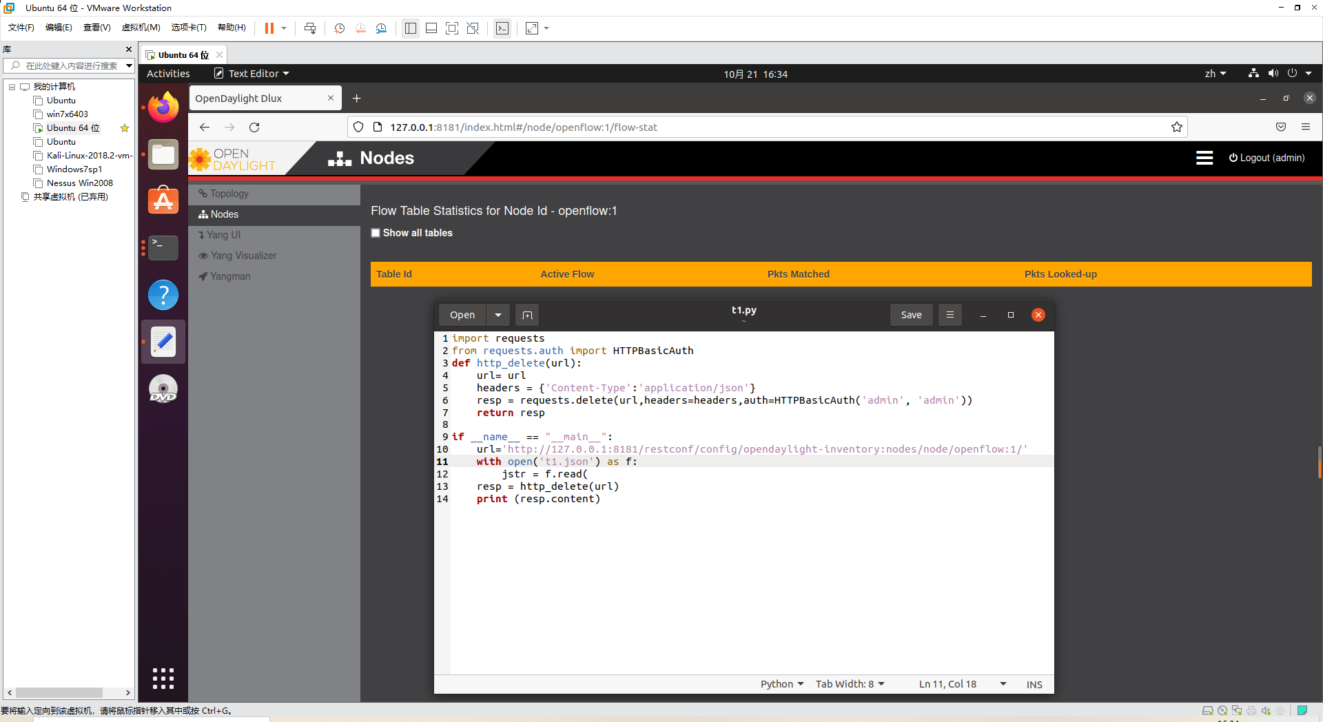 (2) 编写Python程序,调用OpenDaylight的北向接口下发指令删除s1上的流表数据。