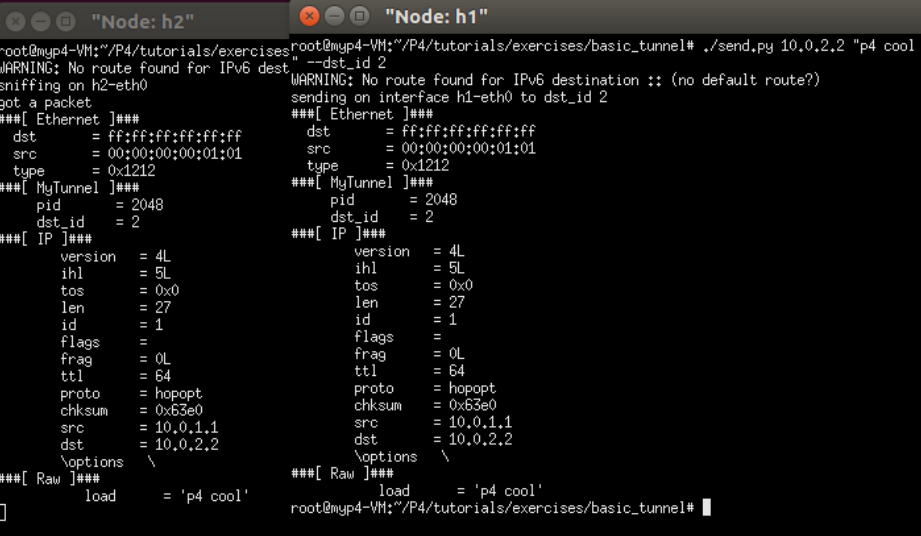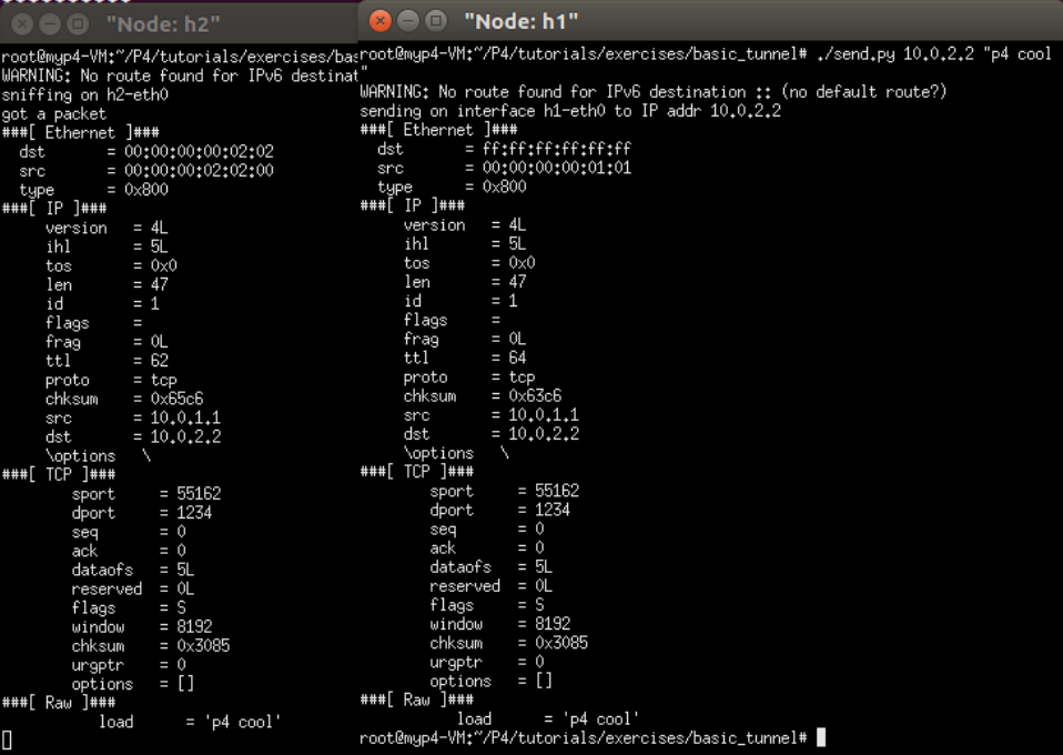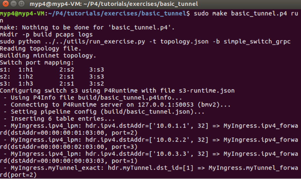 熟悉使用P4实现交换机IPv4的基本转发原理,编写P4程序,在下面的拓扑中实现IPV4 隧道转发。