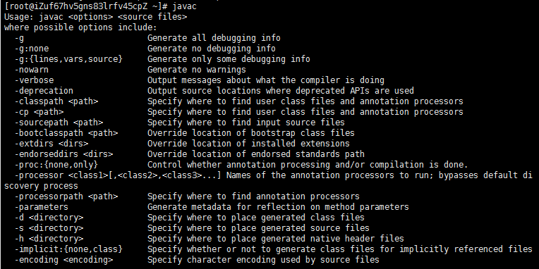 然后输入javac回车,显示如图,就说明安装配置正确