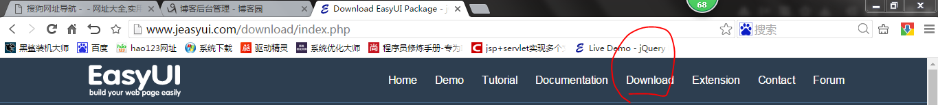 首先,下载jquery easyui文档,url: http://www.jeasyui.com/index.php