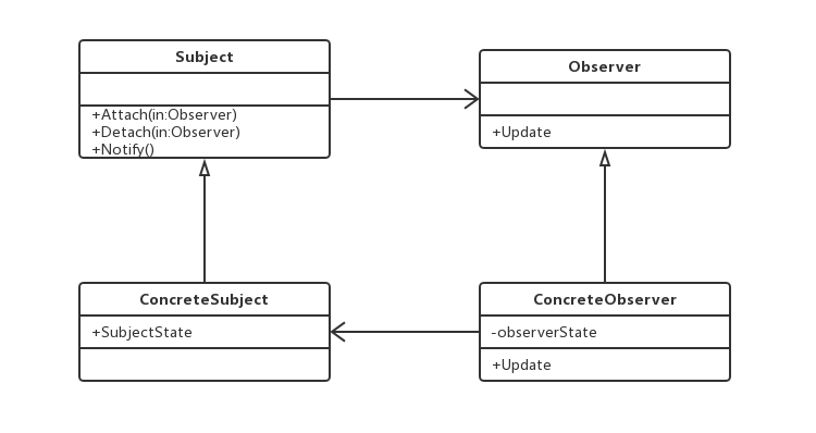 3、观察者模式没有相应的机制让观察者知道所观察的目标对象是怎么发生变化的,而仅仅只是知道观察目标发生了变化。