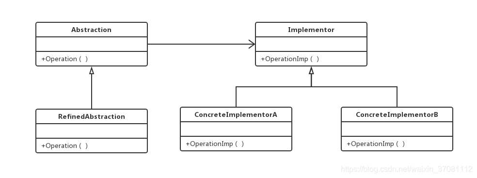 主要意图:将抽象部分与实现部分分离,使它们都可以独立的变化。