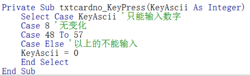 If txtcardno.Text = "" Then '判断卡号是否为空