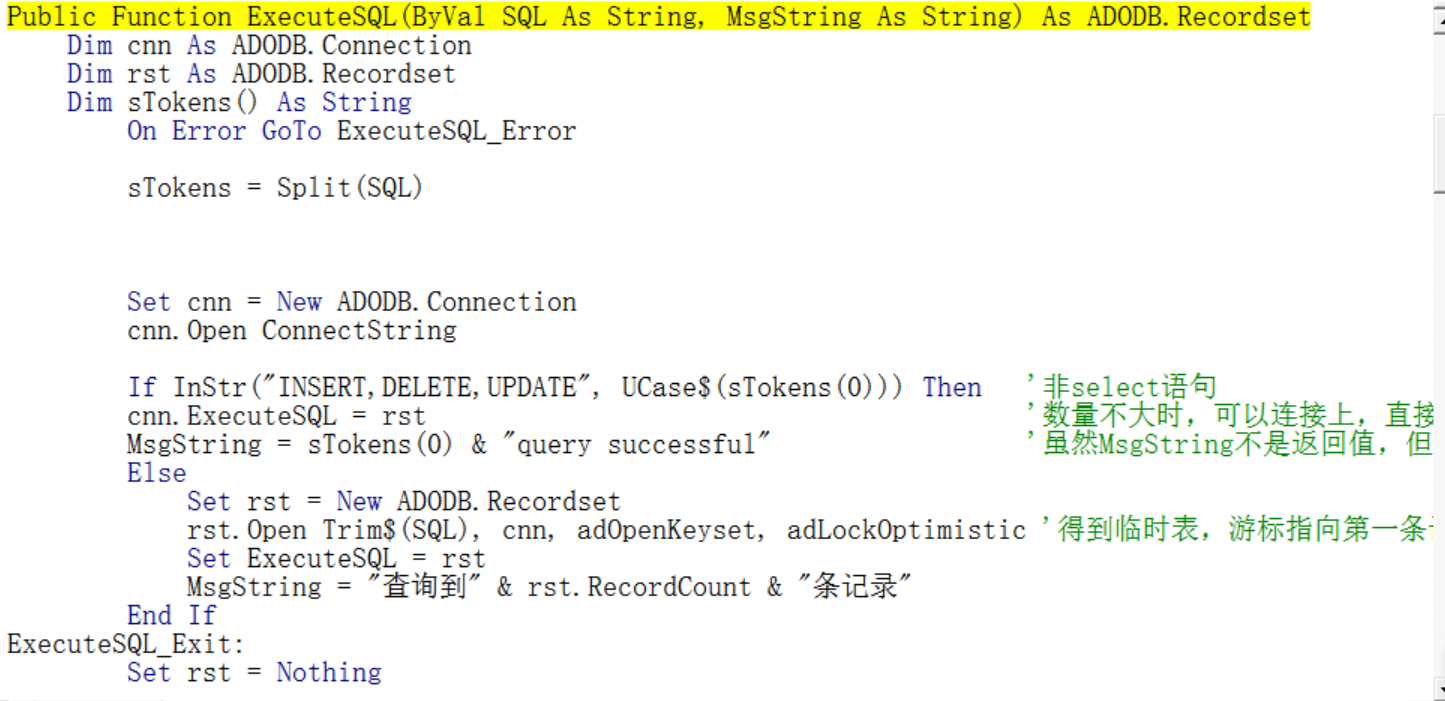 Set onw = ExecuteSQL(txtSQL, Msgtext)