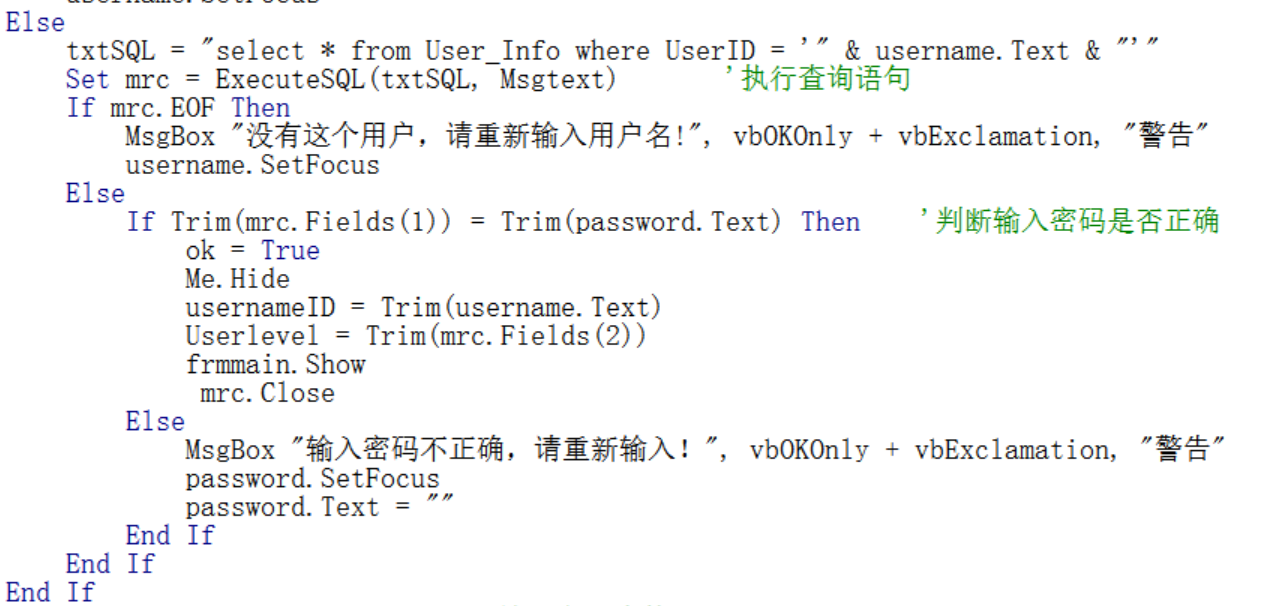 Dim stu As ADODB.Recordset '查看用户是否存在