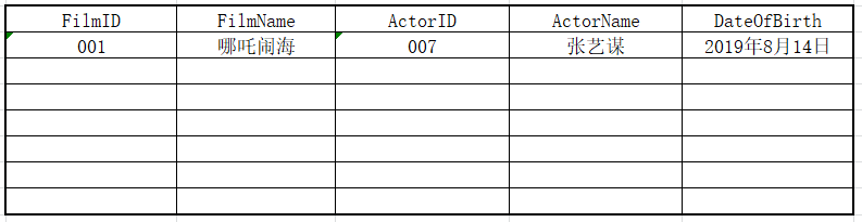 这个例子里,FilmID和ActorID是带主键的,从第一范式来说,它们是满足的,但是从第二范式来说,这就出现了一个问题,它们之间有关联,但是第二范式要求主键中的任意列必须没有局部相关性。那么把它分成如下三分表: