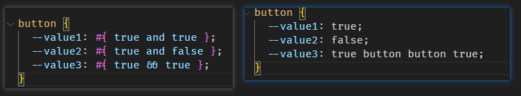 @function my-function($value) { @if $value < 100 { @return 50px; } @else { @return 10px; } } h1 { width: my-function(30); height: if(30 < 100, 50px, 10px); // ternary operator }