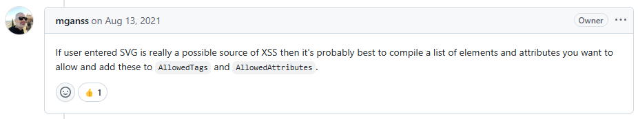 相关讨论 Issue – Sanitizing SVG tag contents against XXS/XXE
