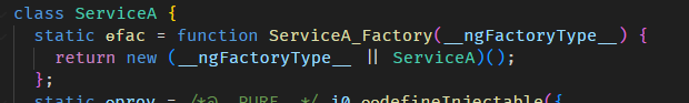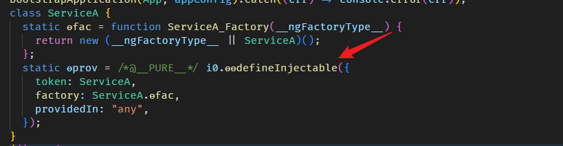 这个 injectable definition 指的是,经过 compile + @Injectable() 后 ServiceA 的 ɵprov static property。