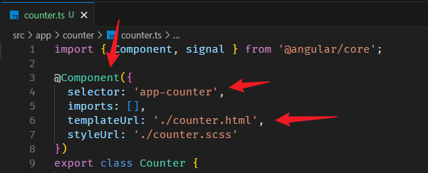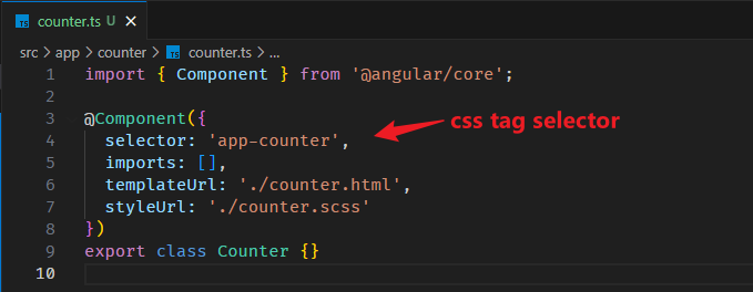 这个 <app-counter /> element 对应的是 Counter 组件 metadata 里的 css selector