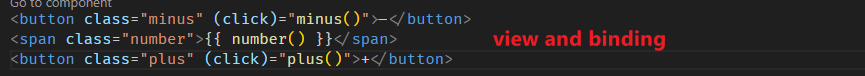 <button class="minus" (click)="minus()">-</button> <span class="number">{{ number }}</span> <button class="plus" (click)="plus()">+</button>