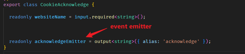 readonly acknowledgeEmitter = output<string>({ alias: 'acknowledge' });