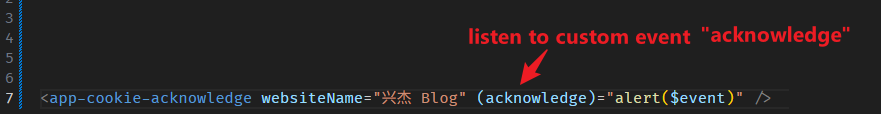 <app-cookie-acknowledge websiteName="兴杰 Blog" (acknowledge)="alert($event)" />
