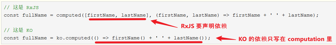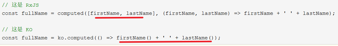 下面是 KO 和 RxJS 的对比代码