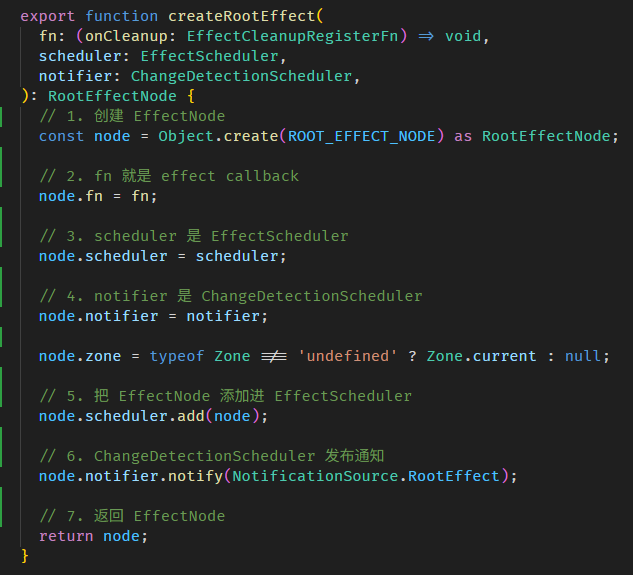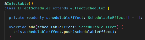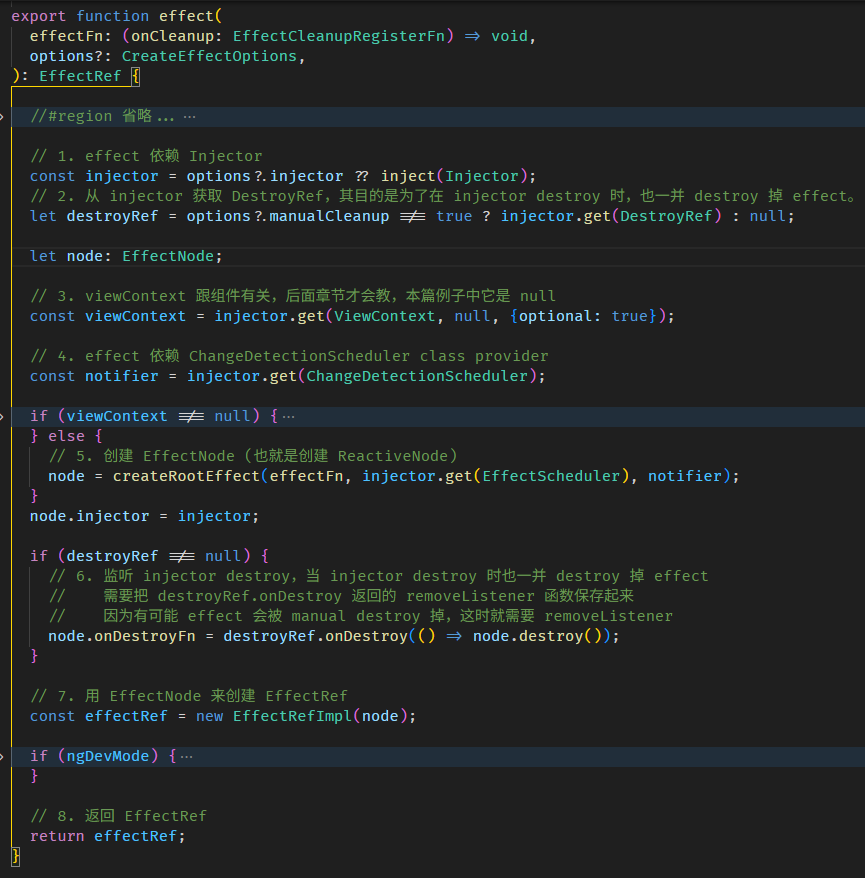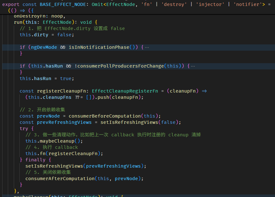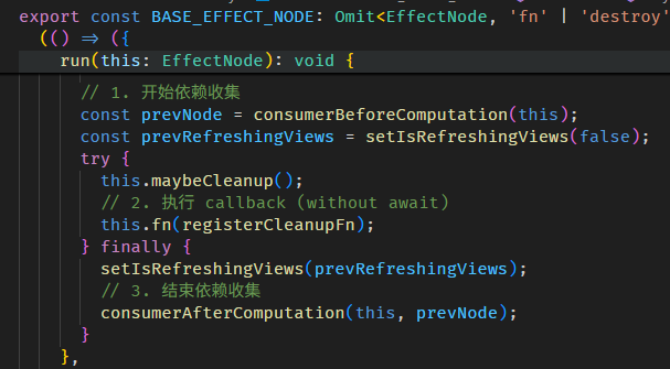 简而言之,effect callback 会在 AfterContentInit 前一脚触发,所以我们可以完全把它俩的执行时机看成是一样的。