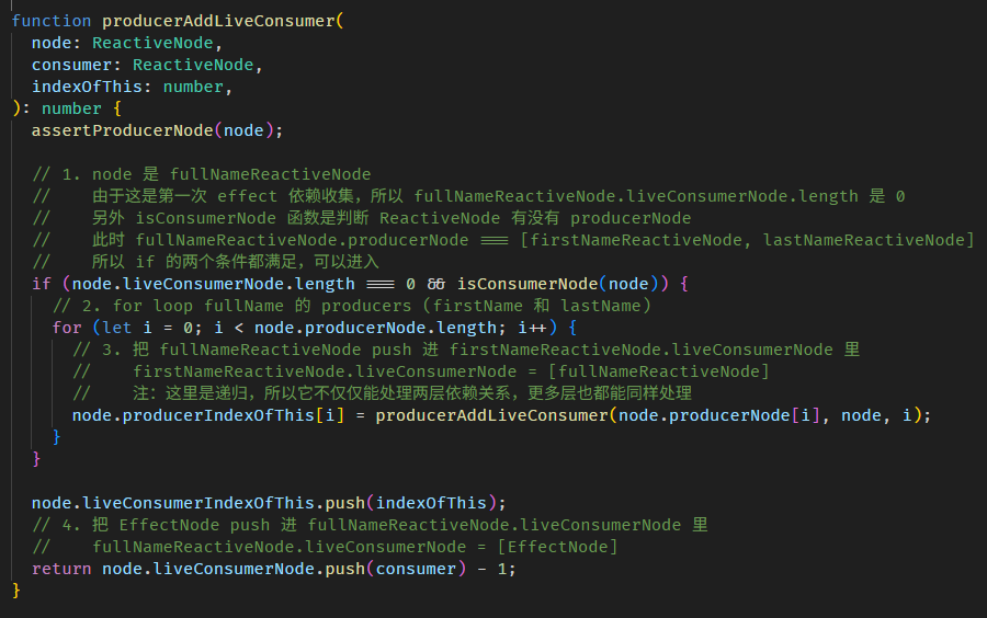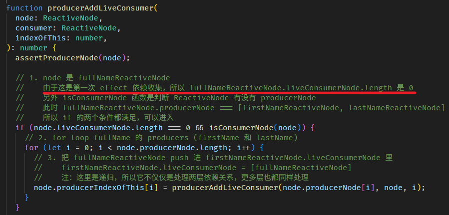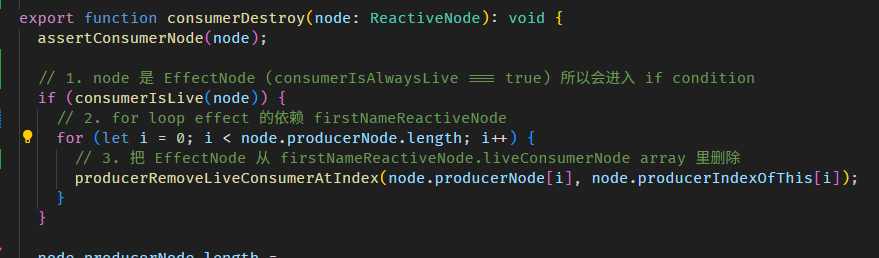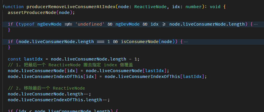 function setupTViewPreOrderHooks() { // 1. 这里是 LView 中的 index 引用 const TVIEW = 1; const PARENT = 3; // 2. 首先,我们要拿到 TNode index // 以这个例子来说的话 // app.component.html // <app-hello-world [value]="value()" appDir1 /> // HelloWorld 组件和 dir1 指令的 TNode 是同一个 <app-hello-world> // TNode index 指的是这个 <app-hello-world> 在 App LView 里的 index // 它是第一个 element,所以 index 是 25 咯。 // 我们透过 ViewContainerRef 拿到当前的 TNode,然后再拿它的 index // 提醒: // 不要使用 ChangeDetectorRef['_lView'][T_Host 5].index 去拿 // 因为指令和组件拿的 ChangeDetectorRef['_lView'] 是不同逻辑,很混乱的。 // 用 ViewContainerRef 就对了 const viewContainerRef = inject(ViewContainerRef) as any; const hostTNode = viewContainerRef['_hostTNode']; const tNodeIndex = hostTNode.index; // 3. 接下来要拿到 TView.preOrderHooks // 同样的,不要试图用 ChangeDetectorRef['_lView'][TView 1] 去拿,不准的 // 用 ViewContainerRef 就对了 const lContainer = viewContainerRef['_lContainer']; const targetLView = lContainer[PARENT]; const targetTView = targetLView[TVIEW]; // 4. 如果 preOrderHooks 是 null 创建一个 array 把 TNode index 传进去给它 if (!targetTView.preOrderHooks) { targetTView.preOrderHooks = [tNodeIndex]; return; } // 5. 如果 preOrderHooks 里还没有这个 TNode index 就 push 进去,有了就 skip if(!targetTView.preOrderHooks.includes(tNodeIndex)) { targetTView.preOrderHooks.push(tNodeIndex); } }