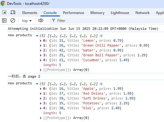 每一次调用 RxJS 的 lastName.next('Derrick') 都会触发 subscription callback,即便我们传入相同的值。