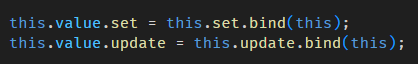 setter 的部分:我们不使用 assign operator 赋值 (因为 assign operator 无法监听和拦截),而是透过调用这个 setter,并传入要 assign 的 value,像这样