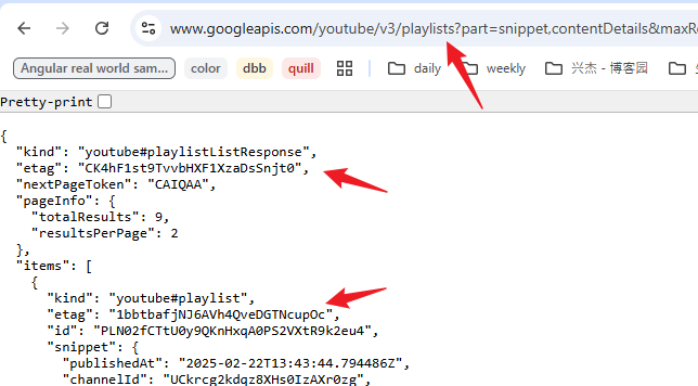 还有哦,playlistItem 的 etag,和 video 的 etag 是不同的。