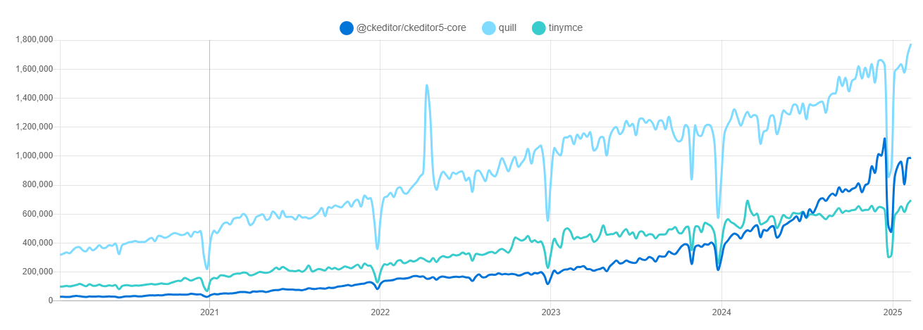 下载量远超 CKEditor 和 TinyMCE