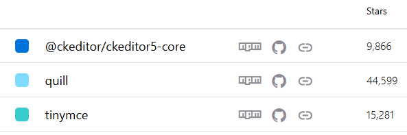 Github 的 star 也远超 CKEditor 和 TinyMCE