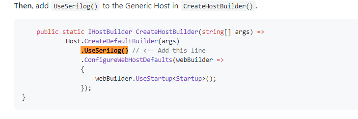 .MinimumLevel.Override("Microsoft", LogEventLevel.Warning) .MinimumLevel.Override("Microsoft.AspNetCore", LogEventLevel.Warning)