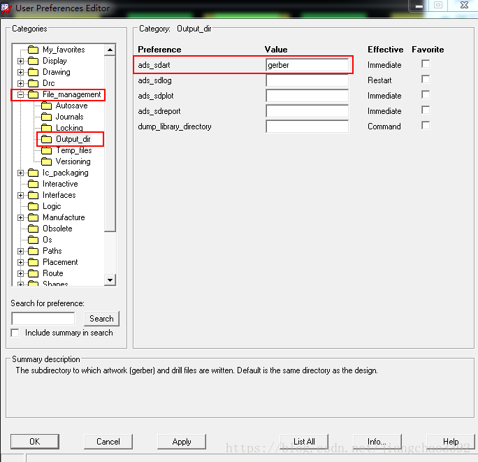 菜单栏“Setup”->”User Preferences…”->”File_management”->”Output_dir”