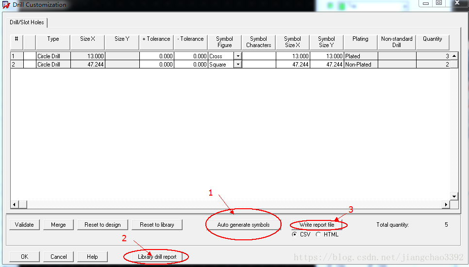 点击红色方框2,弹出的对话框可以查看所有钻孔焊盘信息,