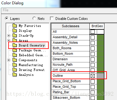 放置前,先设置,关闭所有层显示,单独打开 out-line