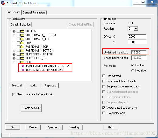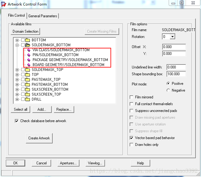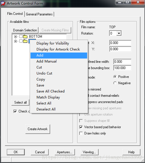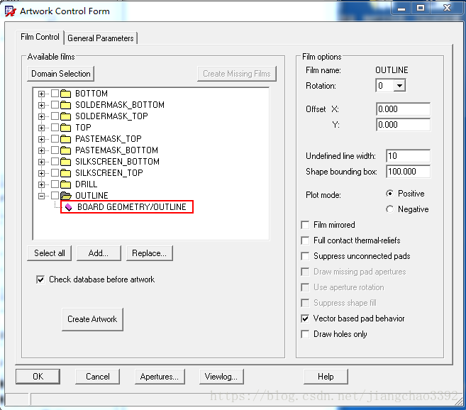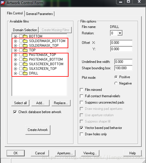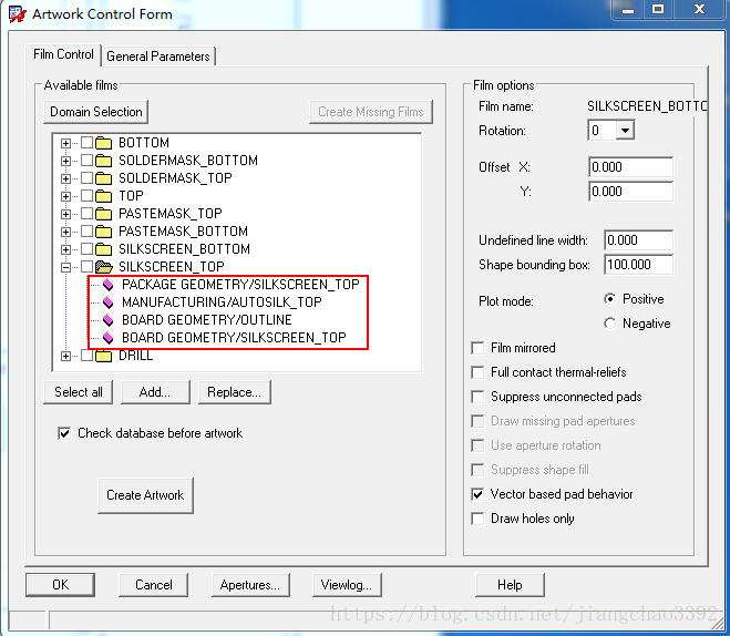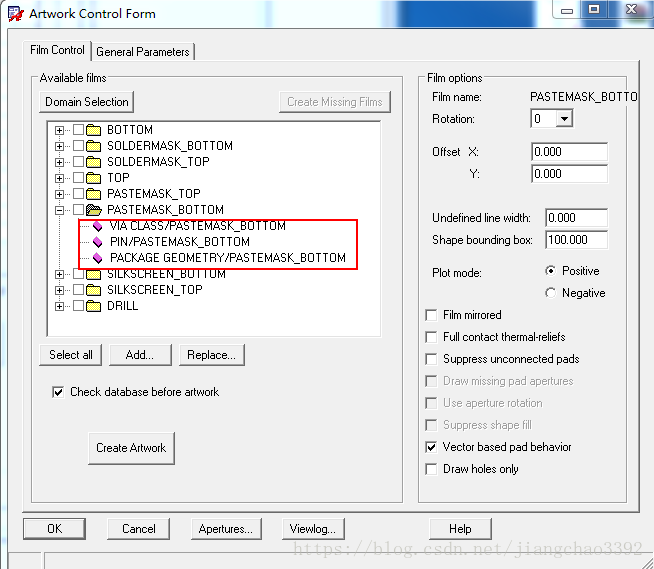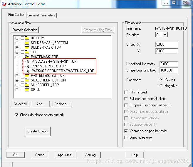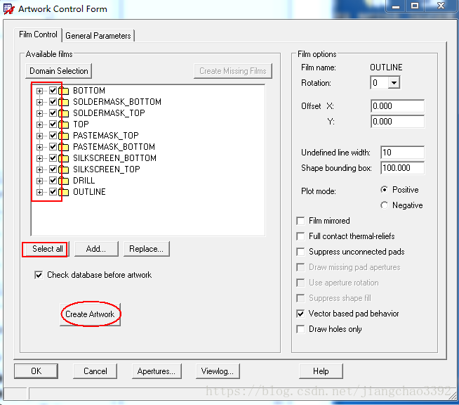点击Manufacture-Artwork命令,单击选择Select All按钮,单击Create Artwork按钮,执行底片生成命令