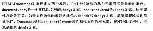 注意:如果修改了文档,在<html>和<head>标签之间插入新的一行,那么表示该行的Text节点就是文档的第一个子节点下面的子节点,并且<head>元素就是第二个子节点的,而不是<body>元素了。