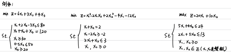 2、非线性规划:当目标函数f(x)或者约束条件中有一个是决策变量x的非线性表达式。