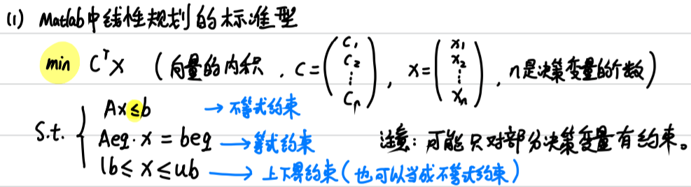[x fval] = linprog(c, A, b, [], [], lb)  % ub我们直接不写,则意味着没有上界的约束