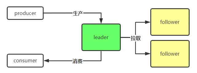 因此,副本之间就有了主从的一个设计,负责提供读写的副本是 leader,而其余的副本称之为 follower,follower 副本只需要从 leader 副本那里一直拉取数据就好了,正常情况下不需要提供读写。