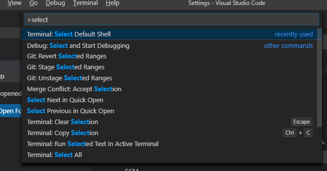 ctrl+shift+p,进入命令面板,输入select命令