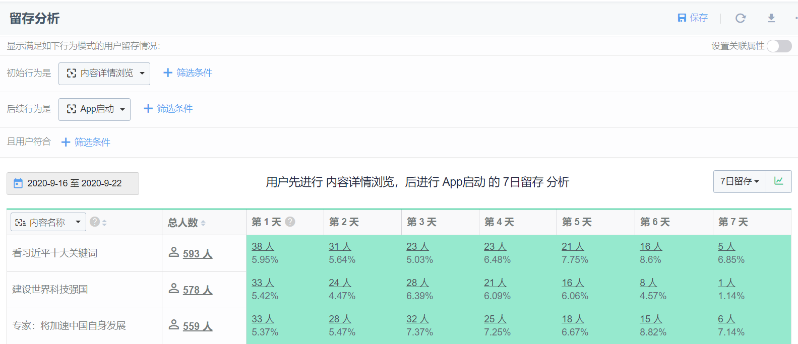 留存分析——>老用户留存分析(老用户留存率很低啊...)